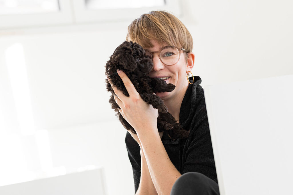 Dass es ein Pudel sein sollte war schnell klar. Nun ging die Suche nach einem Züchter los und ich fand in der Wurfliste des DPK meine kleine Fine. Ich schaute mir auf der Website des Züchters die Bilder an und war hin und weg! Ich rief an und konnte mein Glück kaum fassen: sie war noch zu haben!