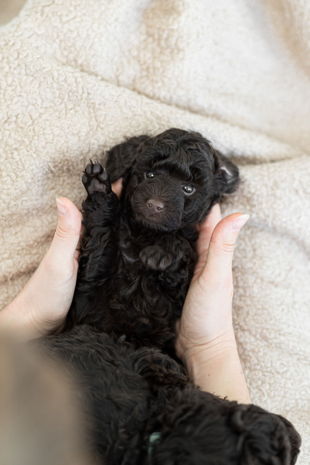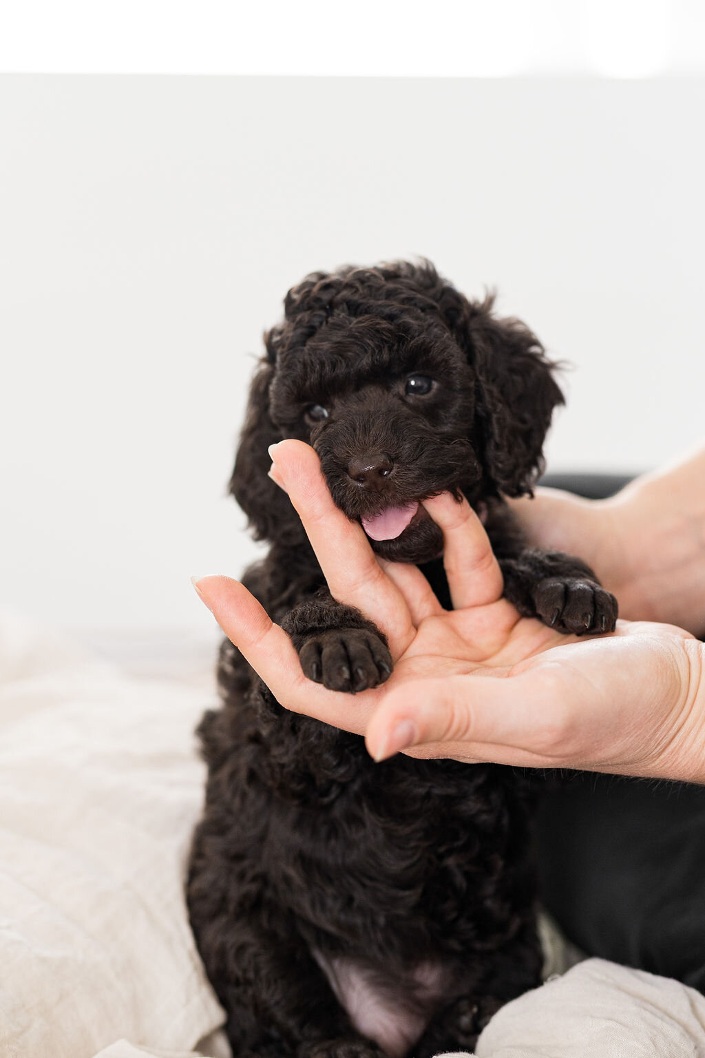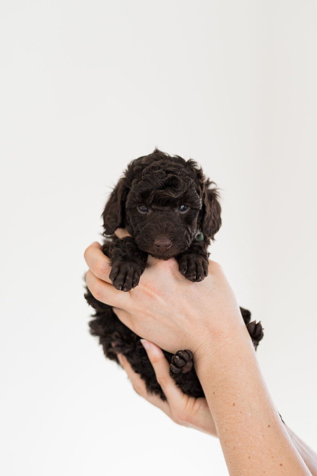 Es sind 2 Rüden und 2 Mädchen, alle in einem tiefen dunkelbraun. Sie werden wahrscheinlich große Zwergpudel / kleine Kleinpudel werden.